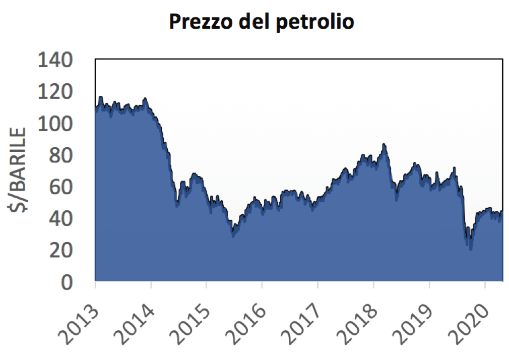 Il prezzo del petrolio è calato dopo il 2014. Fonte: Sole 24ore.