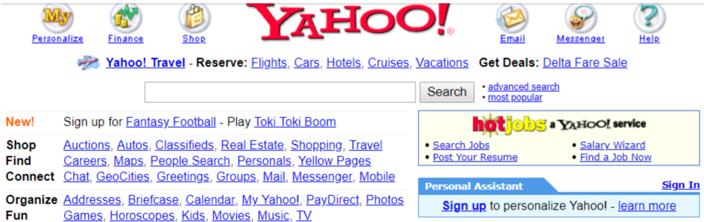 Questa soluzione non è però sostenibile, e nascono i primi motori di ricerca. Yahoo!, nato nel 1994, utilizza autori umani per visitare, una a una, le pagine web e scriverne una descrizione.